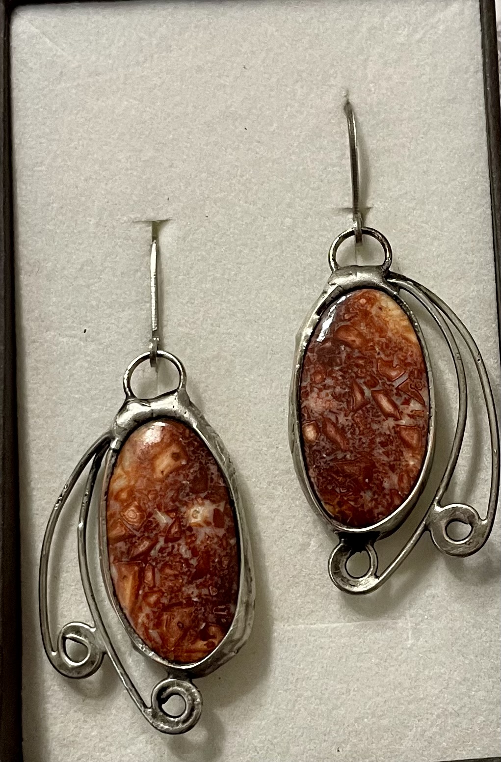 Bezolovnatým cínem s příměsí stříbra pájené autorské náušnice leopardím jaspisem.
