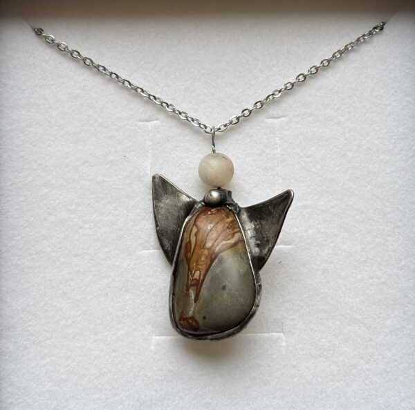 Velikost přívěsku : š. 3 x d. 4 cm. Zavěšen na nerez řetízku , zapínání na karabinku.